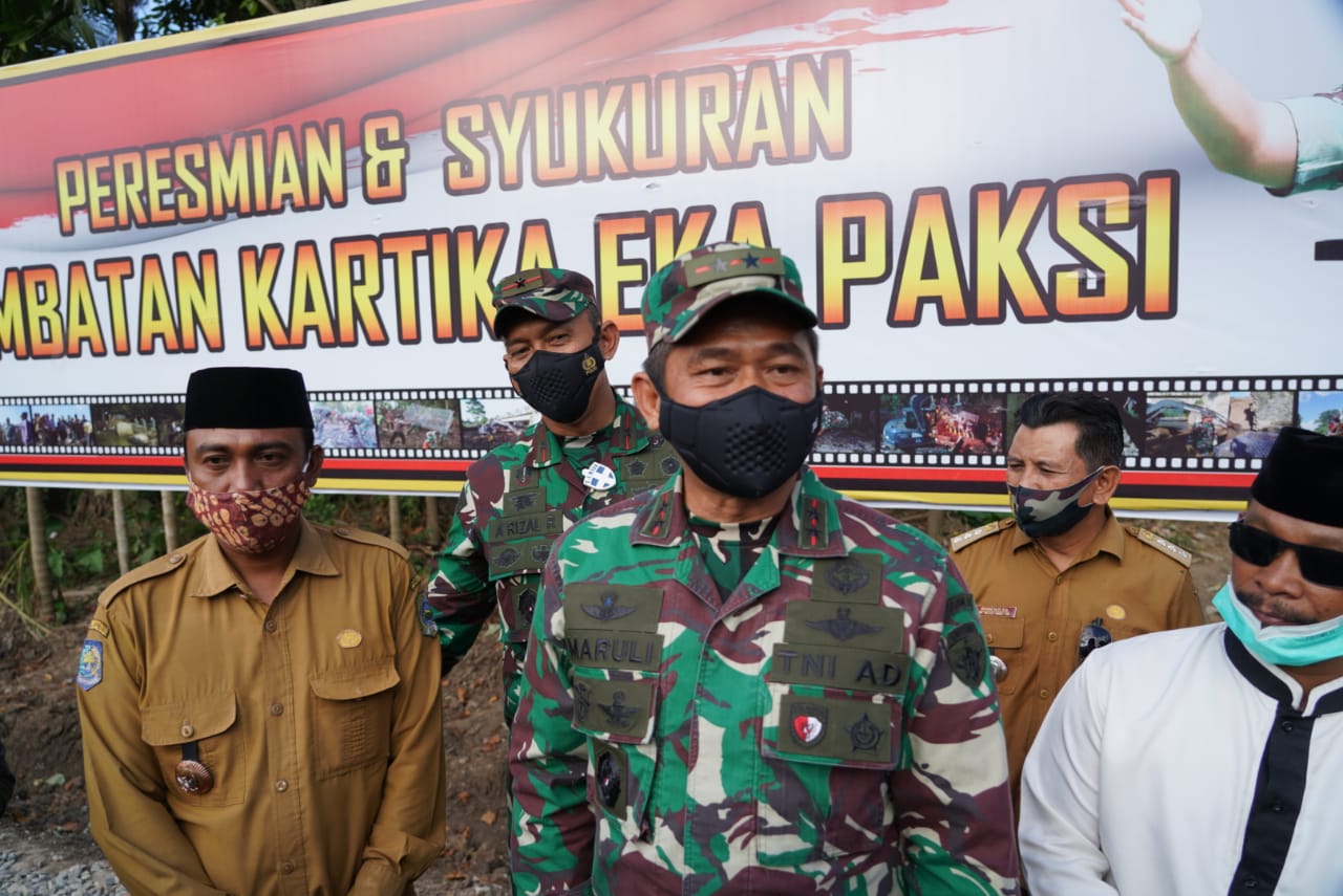 “Luar biasa dalam hitungan hari, jembatan ini sudah berdiri dan dapat digunakan untuk aktivitas masyarakat. Saya secara pribadi dan atas nama Pimpinan TNI AD mengucapkan terima terima kasih setinggi-tingginya atas capaian ini,” ungkap Pangdam.