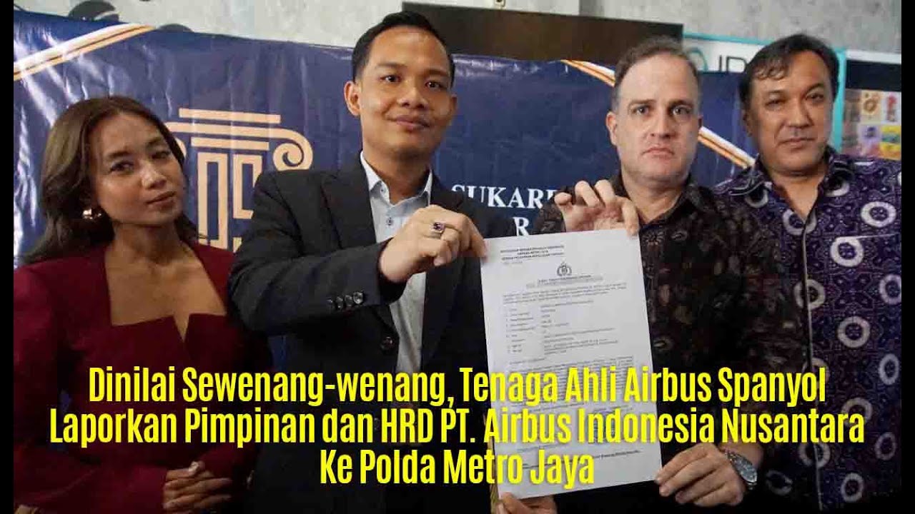 Gonzalo Manuel Moreno Quesada yang didampingi kuasa hukumnya, Sukardi, S.H., dan Fadillah Nur Ikhsani, S.H., dari Puspita Sukardi & Partner melaporkan HRD PT. Airbus Indonesia Nusantara, serta Direktur Utama dan Direktur Operasional produsen pesawat terbesar di dunia tersebut ke Polda Metro Jaya.