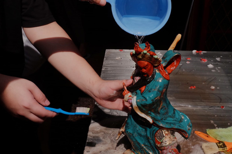 Warga Tionghoa di Jakarta tampak antusias membersihkan patung-patung suci di Wihara Dharma Jaya Taosebio, Glodok, pada Sabtu (25/1/2025). Ritual pencucian patung dewa ini menjadi bagian tak terpisahkan dari tradisi menyambut Tahun Baru Imlek 2576, sebuah perayaan yang sarat akan makna spiritual dan budaya. Dengan persiapan yang matang dan semangat yang tinggi, warga Tionghoa berharap Imlek tahun ini membawa keberuntungan dan kebahagiaan bagi semua. (Foto: Dudut Suhendra Putra)