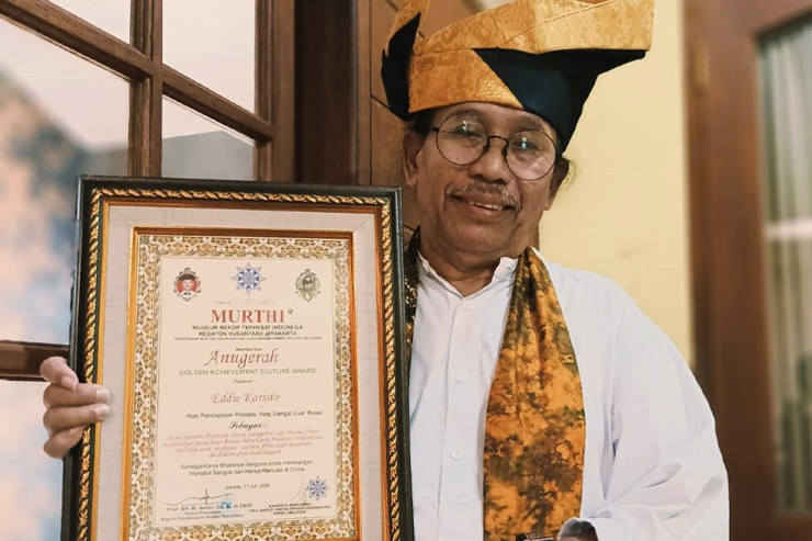 Penggiat budaya Eddie Karsito, menerima penghargaan dengan gelar Murthi Anugerah Golden Achievement Culture Award dari Murthi Kedaton Nusantara Jayakarta Indonesia.